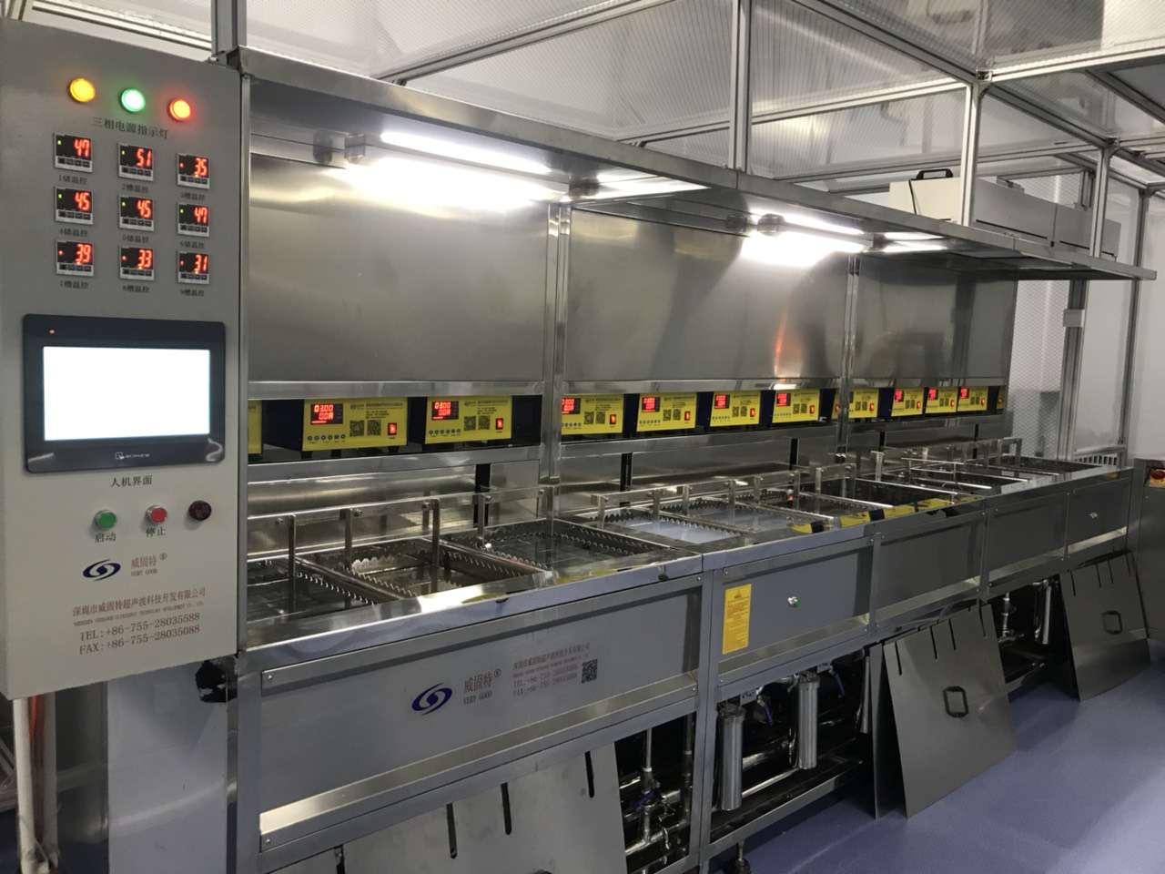 設(shè)備共有12個(gè)功能槽,配置有拋動(dòng)系統(tǒng)、循環(huán)過濾系統(tǒng)、自動(dòng)恒溫系統(tǒng)、超聲波清洗系統(tǒng)、定時(shí)系統(tǒng)、噴淋系統(tǒng)、慢拉脫水系統(tǒng)、熱風(fēng)烘干系統(tǒng)等。